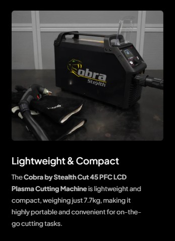 Upgraded design The Cobra by Stealth Cut 45 PFC LCD Plasma Cutting Machine features a new, modern appearance and redesigned control panel, combining a trendy, professional aesthetic with an intuitive, user-friendly layout for enhanced ease of use and operator satisfaction.