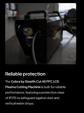 Protective alarm functions The Cobra by Stealth Cut 45 PFC LCD Plasma Cutting Machine is equipped with various protective and alarm functions for pressure, tip wear, over-temperature, and over-current, enabling faster troubleshooting and minimizing unnecessary downtime for improved productivity