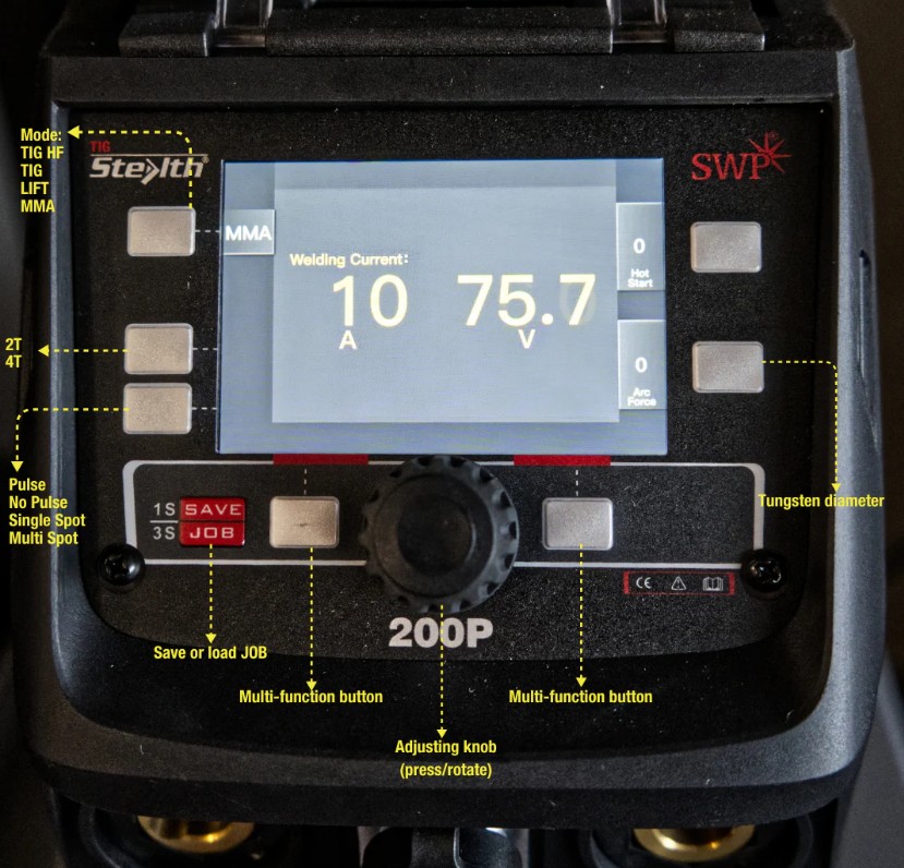 LCD screen The Cobra by Stealth TIG 200P LCD features an intuitive LCD screen, providing precise setting adjustments and real-time feedback on welding output for enhanced accuracy and control.