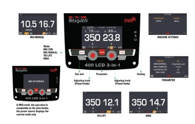 Cobra by Stealth 400 LCD 3-In-1 Multi-process Air Cooled Welding Machine The Cobra by Stealth 400 LCD 3-In-1 Multi-process Air Cooled Welding Machine offers advanced versatility for professional welders. Featuring an intuitive LCD screen, it allows seamless switching between welding processes to tackle diverse projects with accuracy. Its air-cooled design ensures reliable performance and durability for extended use. Enhance your welding precision and productivity with this expert-grade, multi-functional machine.