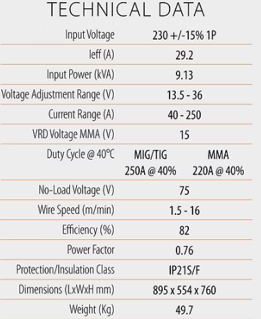 The Jasic MIG 250P is a compact MIG/MAG/ MMA power source, the unit is feature rich and has synergic programs pre loaded with optimal parameters for inexperienced welders but with a provision of fine tuning for the experienced welder. The pulsed MIG mode allows for high quality welds with a spatter free finish