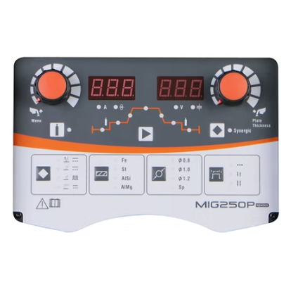 • Functions such as accurate preset current/voltage, 2T/4T operation mode, synergic, gas selection, wire diameter selection, electronic inductance adjustment, and on-demand fan are available