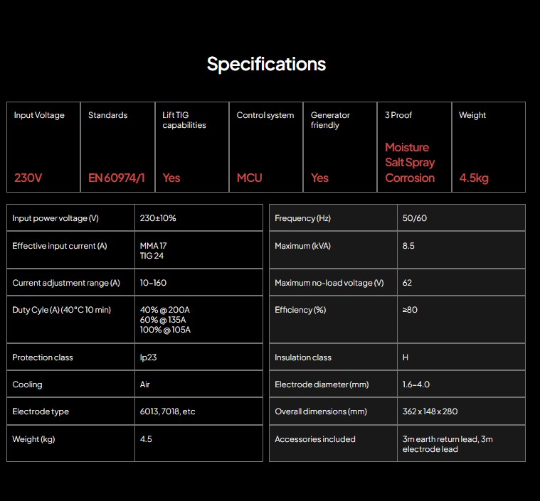 - 5 Year Warranty : Benefit from peace of mind with the Stealth Digi-Arc 175 LT, which offers a generous 5-year warranty, ensuring reliability and long-term support for your welding needs.