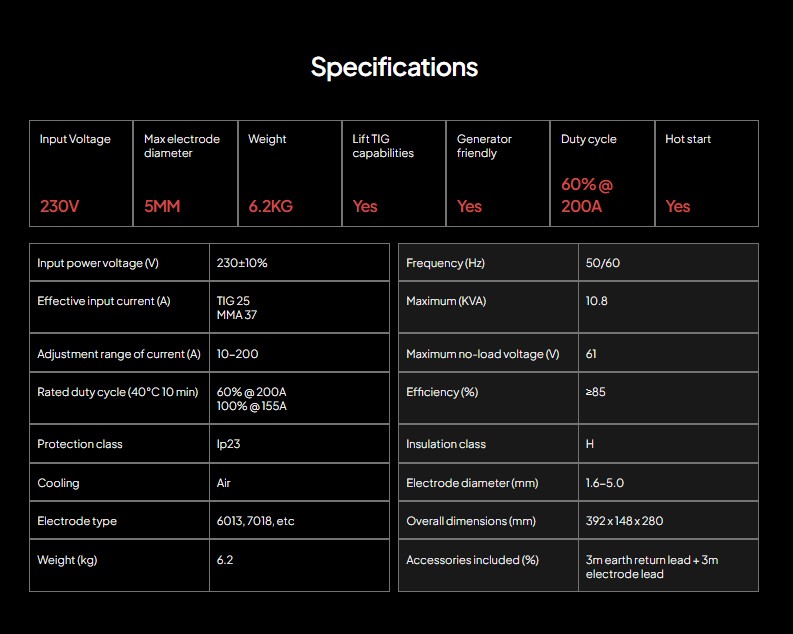 - 5 Year Warranty Benefit from peace of mind with the Stealth Digi-Arc 175 LT, which offers a generous 5-year warranty, ensuring reliability and long-term support for your welding needs.