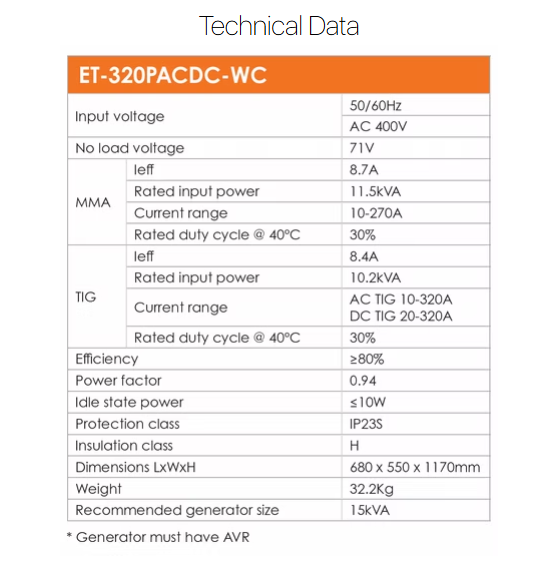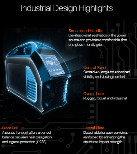 • MMA welding with Hot Start, Anti-Stick and Arc Force control