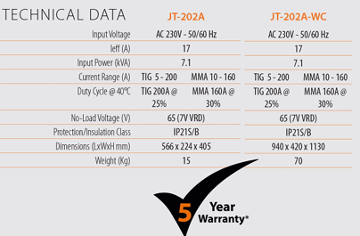 The excellent technical characteristics of the 200 AC/DC make it an ideal choice for professionally qualified TIG welders that require precise and reliable performance.