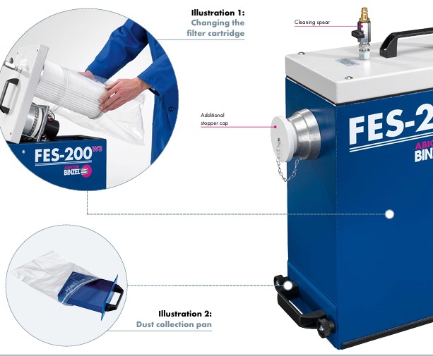 During welding potentially harmful pollutants are created. The portable, compact and powerful high-vacuum extraction units FES-200 & FES-200 W3 capture in combination with fume extraction torches welding fumes directly and effectively at the source, thus protecting both the welder and the environment from harmful particles.